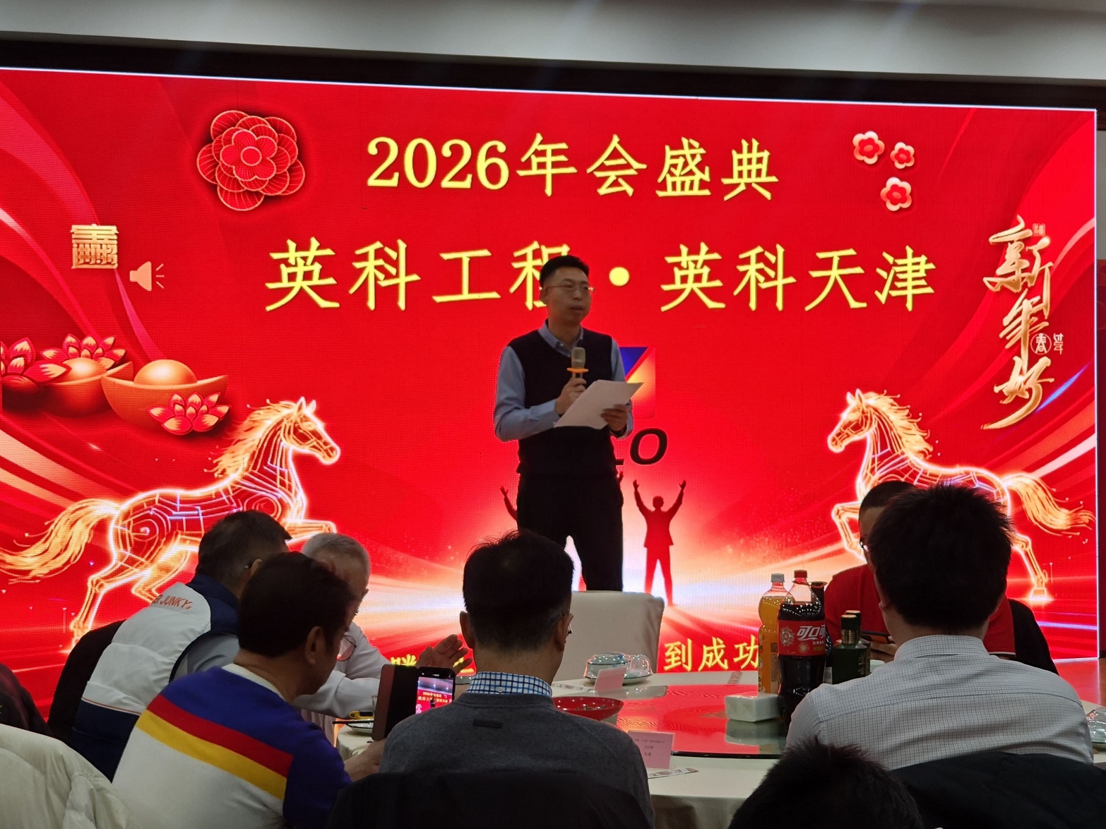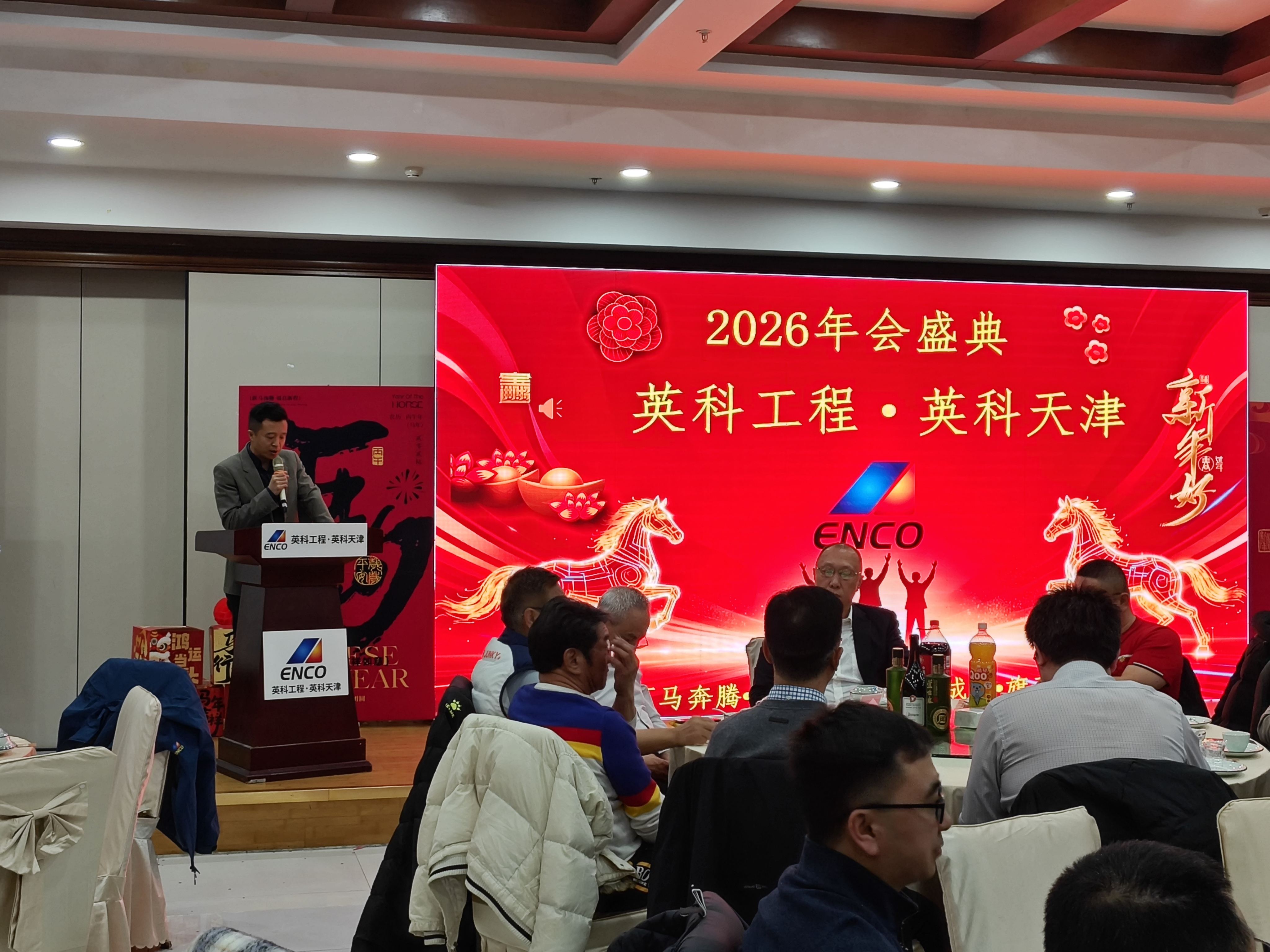 2026年2月7日,英科工程·英科天津“开疆拓海 马到成功”主题年会在津市北辰区龙顺庄园惠宾饭庄隆重举行。全体员工欢聚一堂,共同迎接丙午马年的到来。